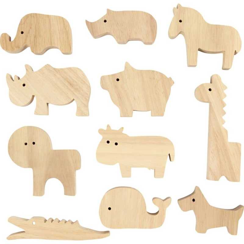 De dieren varieren in hoogte van 3 tot 14,5 cm. Het hout is 2 cm dik, waardoor ze zelfstandig kunnen staan en erg stevig zijn. Dus ook erg leuk om mee te spelen.